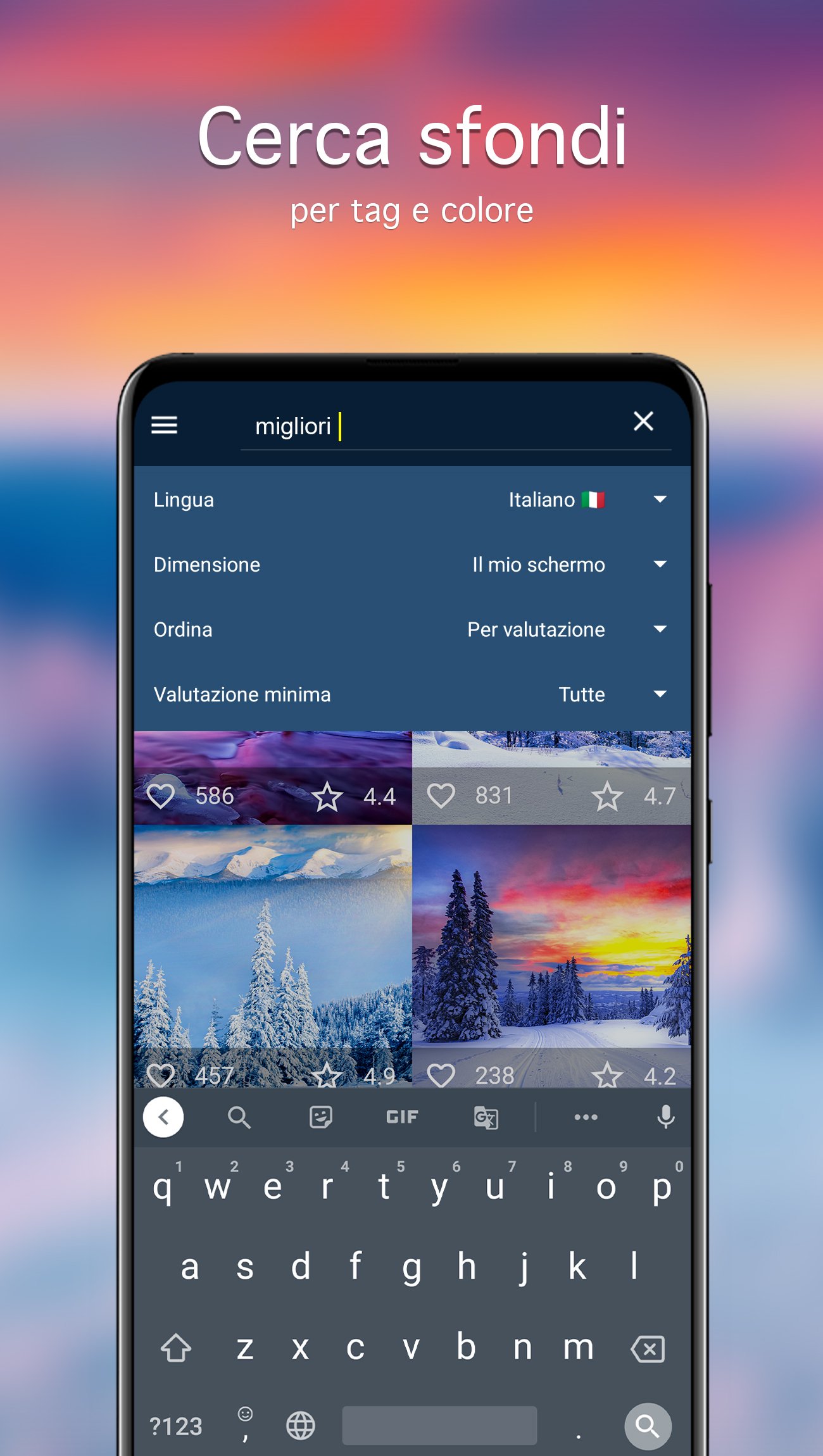Sfondi 4K d'inverno, cerca per colore ed etichette e attiva il cambio automatico