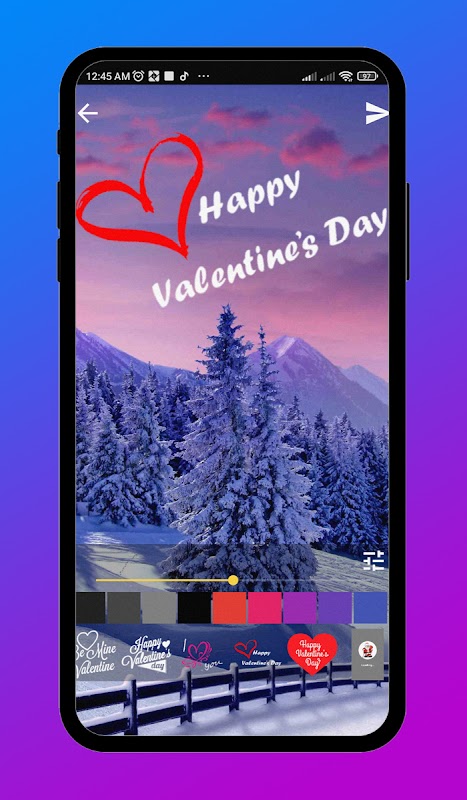 Nell'applicazione Winter Wallpapers HD+, non solo puoi scegliere e installare i tuoi sfondi invernali preferiti sul tuo telefono, ma anche creare una cartolina e congratularti con i tuoi amici e i tuoi cari per le vacanze invernali - Capodanno, Natale e San Valentino.