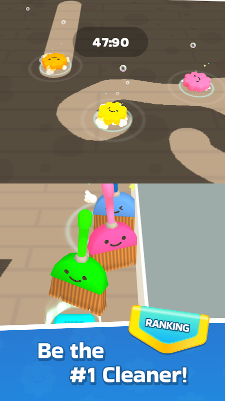 Pulisci rapidamente i pavimenti disordinati, raccogli skin fantasiose e diventa un pulitore più potente!