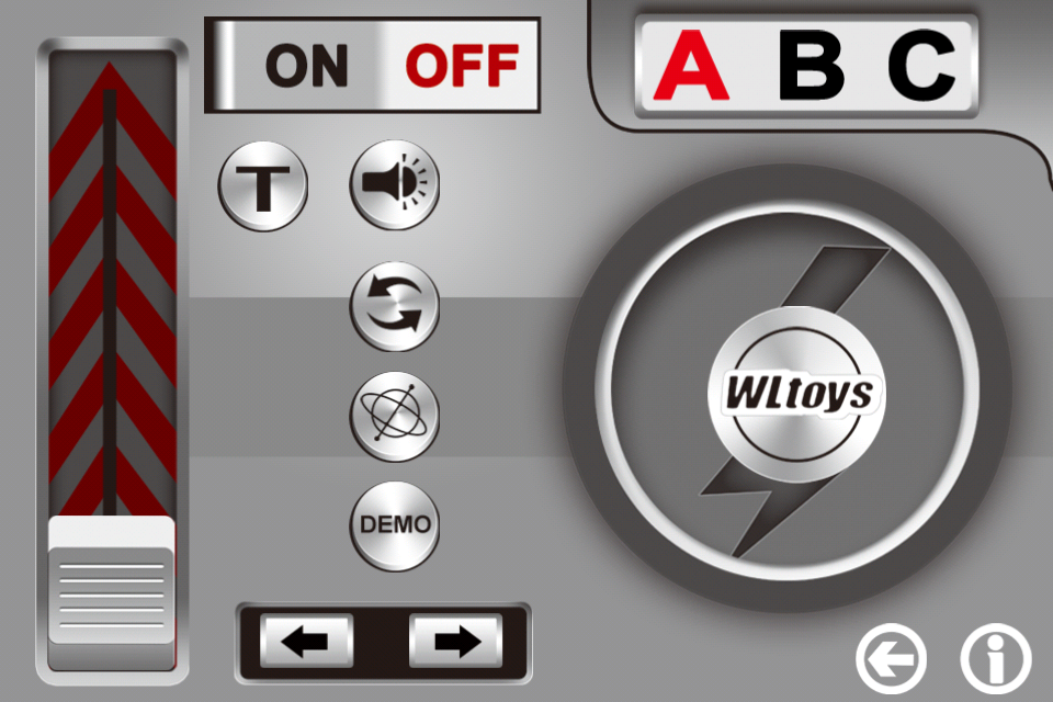 1.Top of the screen: Frequency selection. Select A, B, or C to select your helicopter’s frequency.