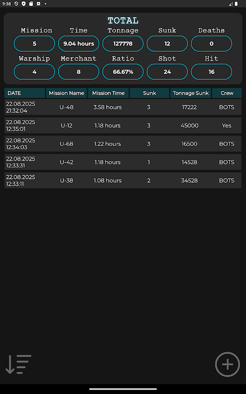 Ottimizza le tue missioni U-Boot con il Calcolatore Wolfpack! Calcola rapidamente la velocità del bersaglio inserendo il tempo di passaggio e la lunghezza della nave. Determina la distanza del bersaglio utilizzando l'altezza verticale e l'altezza dell'albero. Stima il tempo di impatto del siluro e misura la distanza dalla nave bersaglio utilizzando i dati di portata e distorsione dell'idrofono in immersione. Registra in modo efficiente le statistiche della missione, inclusi il tonnellaggio affondato e il numero di navi, per ottenere dati dettagliati. Migliora il tuo vantaggio tattico con calcoli rapidi e precisi!