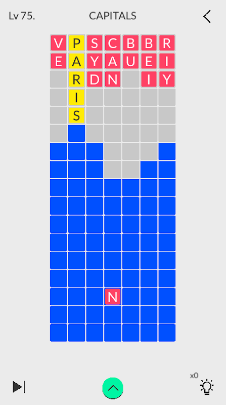 2 letters of each word are initially spawned and the player has to place each new letter that spawns in the correct position to complete the word.