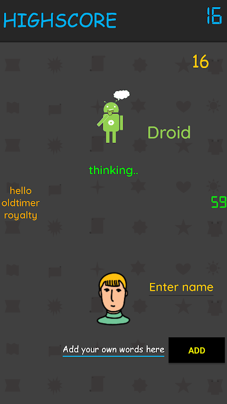 • Nel riquadro a sinistra è possibile vedere la cronologia di tutte le parole scambiate durante il gioco.