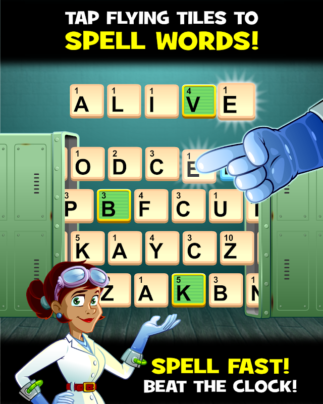 In this fast-paced spelling game, your words power Dr. Von Vocab’s crazy lab! Grab letters as they whiz by on conveyor belts and form words as fast as you can to keep Dr. Von Vocab’s experiments going. Are you ready for Word Science, a new word game that only science could create?