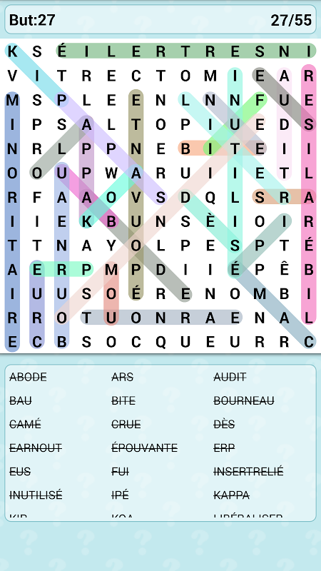 Entraînez votre esprit et d'améliorer vos compétences de cerveau avec Mots Mêlés. Il est adapté pour les adultes et les enfants. Le jeu Mots Mêlés est idéal pour des heures de divertissement.