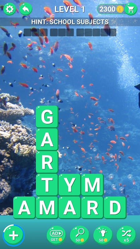 The Word Stacks level has stacks of tiles shuffled in an intelligent way. Player can swipe across the tiles of letters horizontally or vertically to form a word. Once the correct word is found, the tiles concerning the word are removed and tiles above are drop to form/continue the tower of word. There are many categories and each level are of a random group/category of word. Obviously, a hint for each level’s category is provided and displayed to help the player.
