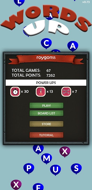 Words Up is a fun and challenging match-3 game where you find 4 (or more ) letter words in a letter grid. Each game board will have the same starting grid giving you the chance to find the best opening moves to propel yourself up the world rankings!