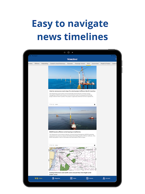 WorkBoat fornisce informazioni di alta qualità a tutti i segmenti dell'industria marittima nordamericana attraverso WorkBoat Magazine, WorkBoat.com e l'International WorkBoat show.