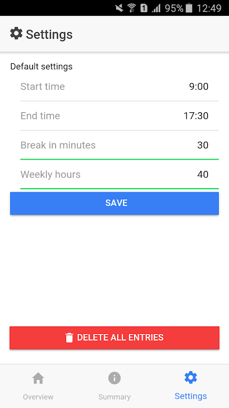 - Impostare i tempi di inizio, fine e pausa come valori predefiniti per la registrazione dell' orario di lavoro.