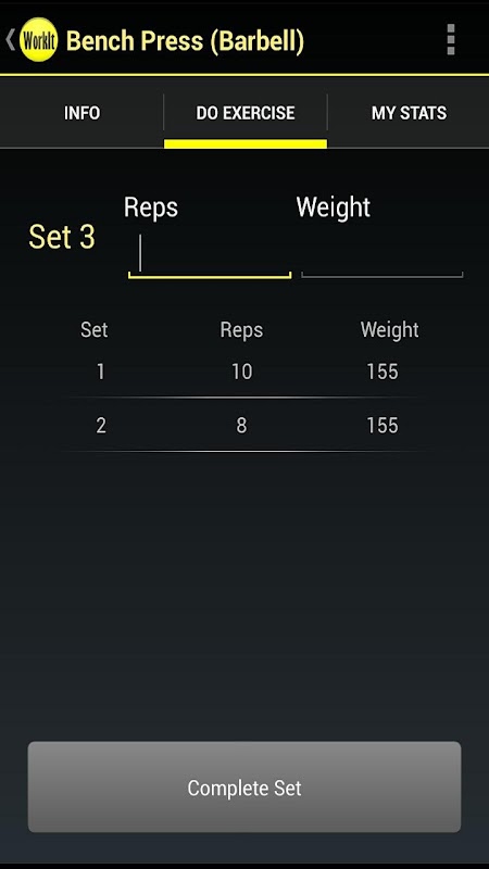 + Keep track of weight and reps for each lift