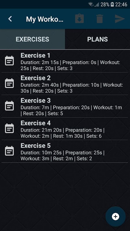 - Configura gli esercizi (tempo di preparazione, tempo di allenamento, tempo di pausa, numero di ripetizioni)