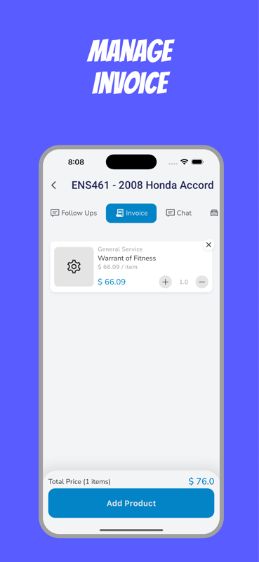 Scansione di codici a barre per la fatturazione: i meccanici possono scansionare i codici a barre dei prodotti direttamente nelle fatture mentre lavorano, garantendo che tutte le parti e i servizi siano fatturati accuratamente.