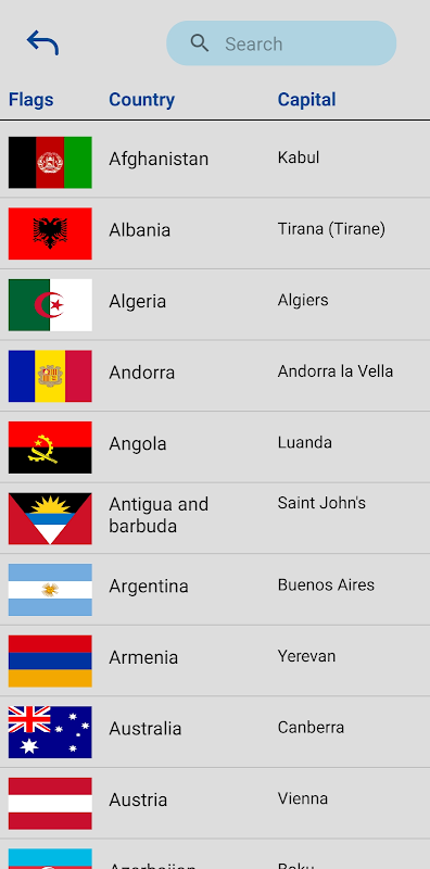 * Learn all countries flags and capitals.