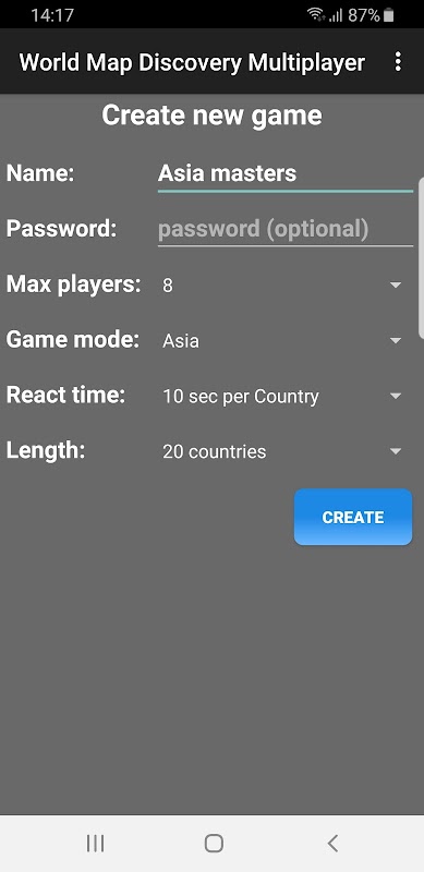 Per competere con i tuoi amici o familiari online, chiedi loro di scaricare l'app. Quindi puoi creare o partecipare a partite multiplayer in cui puoi giocare con loro contemporaneamente e capire chi conosce meglio la mappa del mondo.