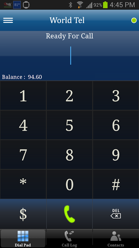 "World Tel" is a Mobile Dialer can be used to make VoIP calls.