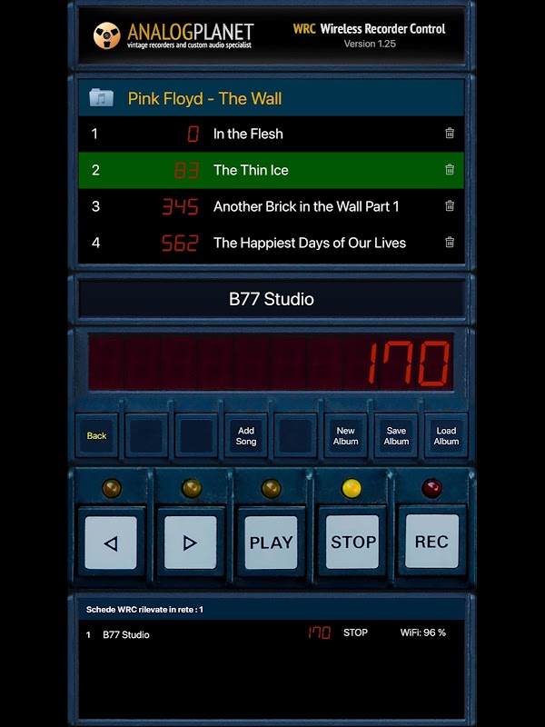 Utilizzate il software sul vostro smartphone o tablet dopo aver installato la scheda dedicata per il vostro registratore. Tutte le schede sono completamente plug and play in quanto l'installazione avviene senza effettuare saldature e non necessita di particolari competenze tecniche. Il software è disponibile per dispositivi Apple IOS e Android e consente il controllo simultaneo di tutti i registratori equipaggiati con una scheda WRC. Tutte le funzionalità originali del registratore rimangono invariate ed è sempre possibile utilizzare la pulsantiera sulla macchina nella maniera tradizionale.