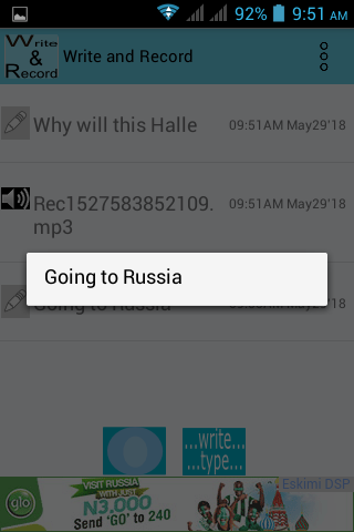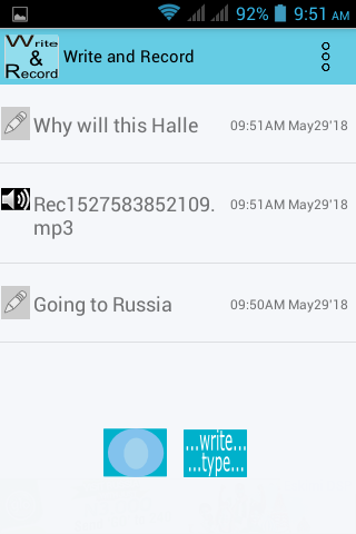 Write and Record app enables you to quickly save anything via writing it or recording it. You can record your voice to playback later, you save text for later view. Write and Record enables you to save text and record voice and view the writings later or play the record later.