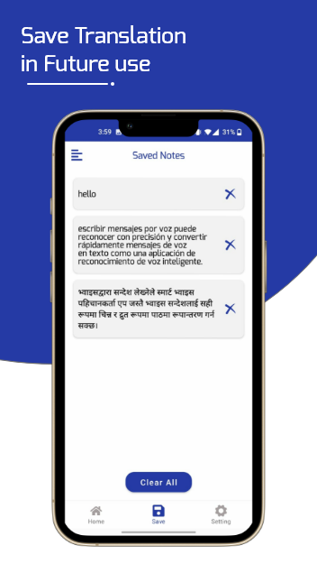 Con questa app di scrittura SMS tramite traduttore vocale, puoi convertire facilmente l'audio in testo o la voce in testo per farti sentire rilassato. Un'app di conversazione intelligente può convertire i messaggi vocali in testo in più lingue per te. L'app riconosce il tuo audio e lo converte in testo in tutte le lingue con questo traduttore di note vocali. Parla e fai digitare automaticamente le tue parole.