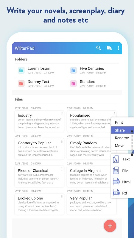 Informazioni sull'APK WriterPad – Write Novels, Scre