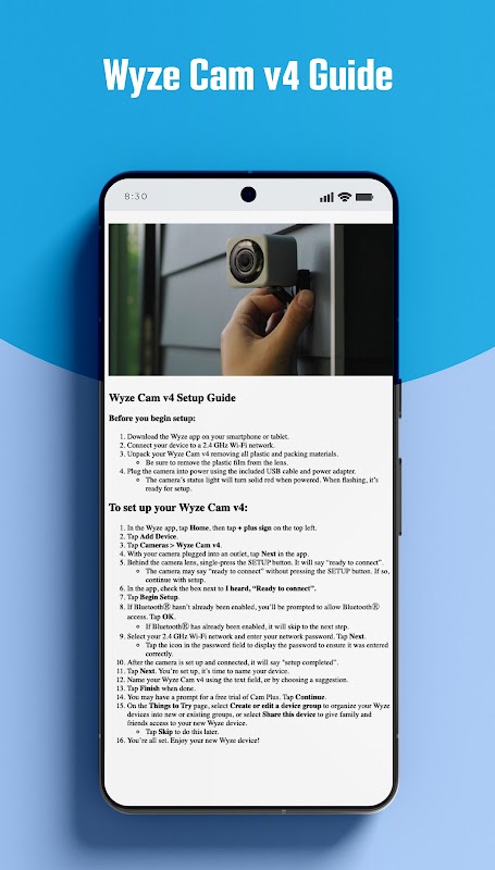 Questa app non è un prodotto ufficiale dell'app. Questa è solo l'app guida per l'utente Wyze Cam v4.