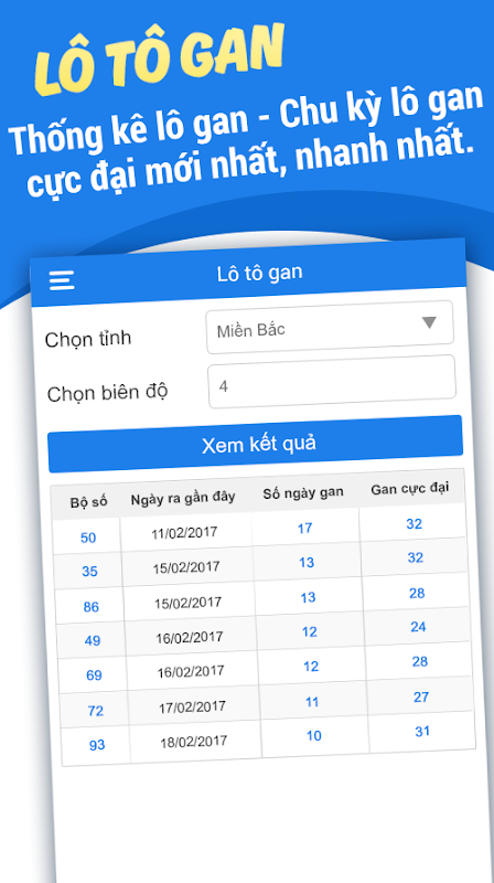Bên cạnh cho phép tra cứu ket qua xo so ngày hôm nay, phần mềm cho phép xem nhanh KQSX mới nhất theo các ngày kèm theo thống kê đầu đuôi, lựa chọn đầu đuôi 2 số, 3 số, tắt bật âm thanh tiện lợi