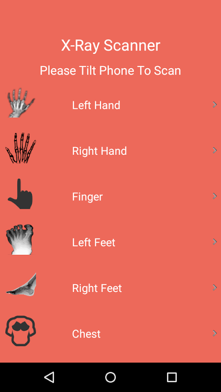 Questo non è un vero scanner a raggi x ed fotocamera non viene utilizzato in questa applicazione. Questa è solo un'applicazione scherzo ed è fatto solo a scopo di divertimento.