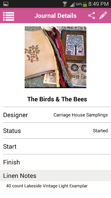 Punto croce journal / inventario app costruita da ricamatrici incrociate per cucitrici trasversali.