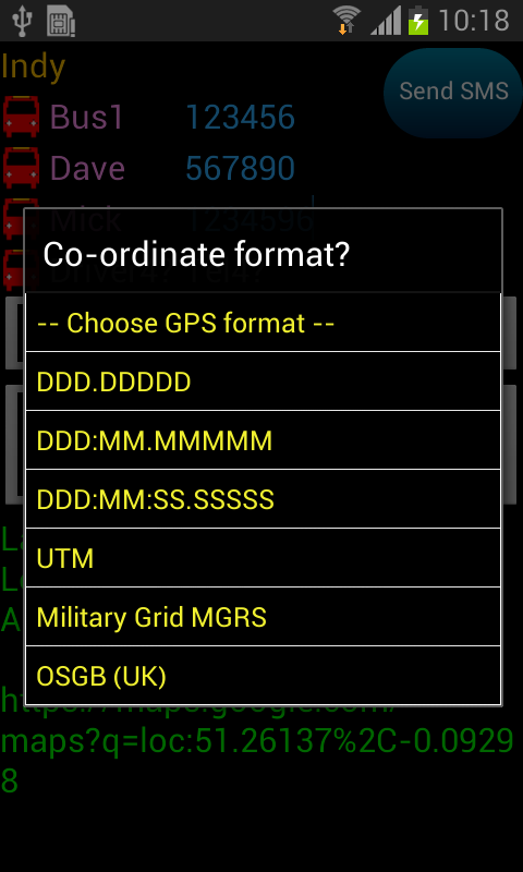 Just pick a message, wait for the GPS to 'ping' and hit Send SMS.