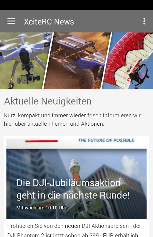 XciteRC NEWS - l'applicazione ufficiale di XciteRC modello per smartphone e tablet. I nuovi prodotti, offerte speciali e sconti interessanti, foto e video, consigli e trucchi direttamente sul tuo cellulare. Scopri istantaneamente e facilmente quando sono disponibili i nuovi modelli e si prendono dalle informazioni facilmente nel nostro negozio di marca. XciteRC NEWS - sempre aggiornati su nuovi prodotti, promozioni e tutto ciò che rende interessante modello.