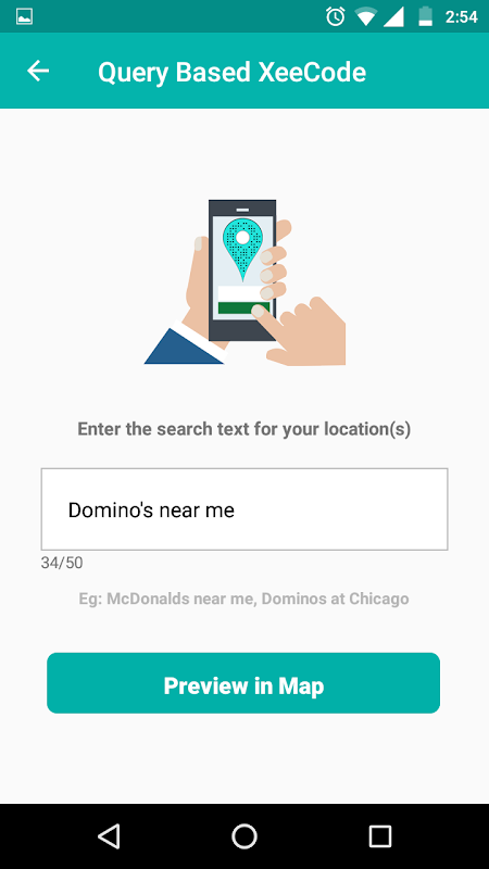 Query XeeCode: The results for the location query from map interface can be tagged using this XeeCode. For eg. Create a XeeCode for a query like “Dominos near me” or "Parking near me" or "BestBuy in NewYork" and so on. The XeeCode scanner delivers the results dynamically to include the latest additions around you. This could even be reused from place to place.