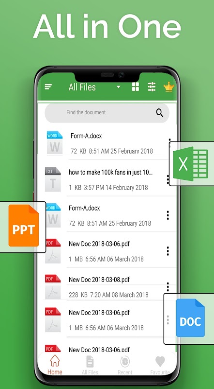 🗂 Visualizza tutti i tipi di file di documenti in un'unica app di Excel Reader.