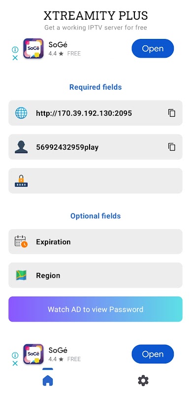 Ottieni un'applicazione Xtream IPTV sul tuo dispositivo, che si tratti di un telefono cellulare, di un ricevitore o di una Smart TV..., apri l'applicazione, scoprirai che richiede server: indirizzo del server, nome utente e password. I dati necessari per eseguire Xtream IPTV sul tuo dispositivo sono forniti gratuitamente dalla nostra applicazione. Devi solo copiarli dalla nostra applicazione sul tuo lettore Xtream IPTV e goderti la visione legale di centinaia di canali TV in tutto il mondo.