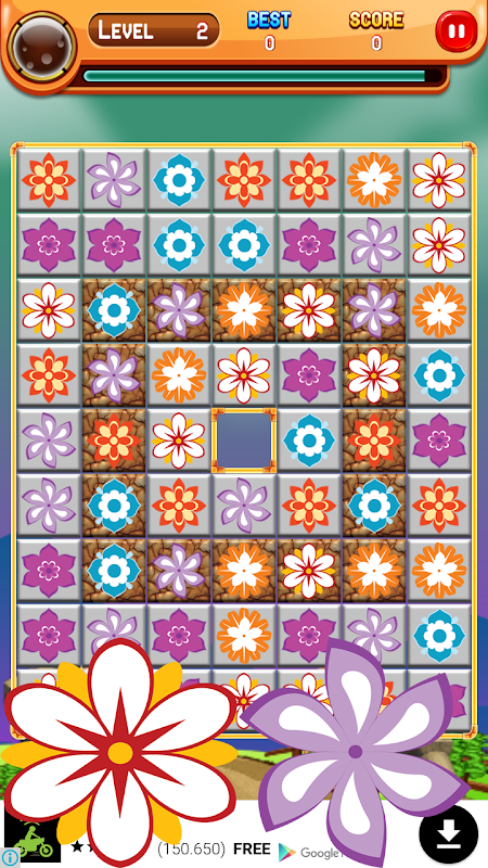 When match four of the same color flower, the whole line will be eliminated. More of the same color flower together, more amazing effects there will be. Come on and use your head to smash them all!