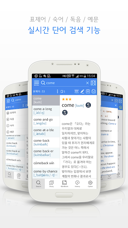 -독음 검색 기능 지원(발음을 소리나는 대로 한글로 입력하여 영단어 검색)