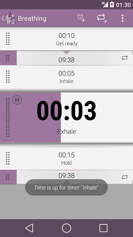 Timer Yoga è un facile da usare e discreto app timer soprattutto fatta per lo yoga, la meditazione e altri allenamenti in cui non si vuole interagire con i vostri allarmi timer durante gli esercizi. Con Timer Yoga c'è non c'è bisogno di interrompere per te stesso per mettere a tacere eventuali allarmi timer , invece si è discretamente notificato che il tempo è scaduto per la parte e poi continua automaticamente con il timer successiva.