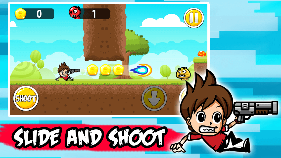 your job is to run and shoot them all, jump whenever you find a new Wobble tile, slide under the trees and run for your life, watch your head so you don't get hit by y-k