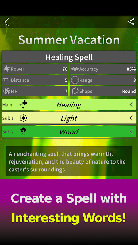 È possibile la battaglia automatica e il mago utilizzerà l'incantesimo che hai creato in base alla situazione, quindi è facile da giocare!