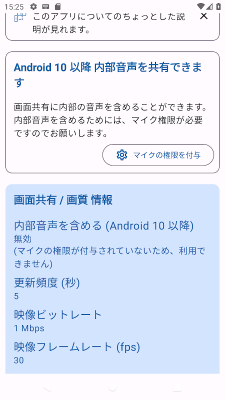 Android 14 QPR2 から利用できる、部分的な画面共有に対応しました。これを使うと、アプリの領域のみがミラーリングされます(ステータスバー等は映りません)。