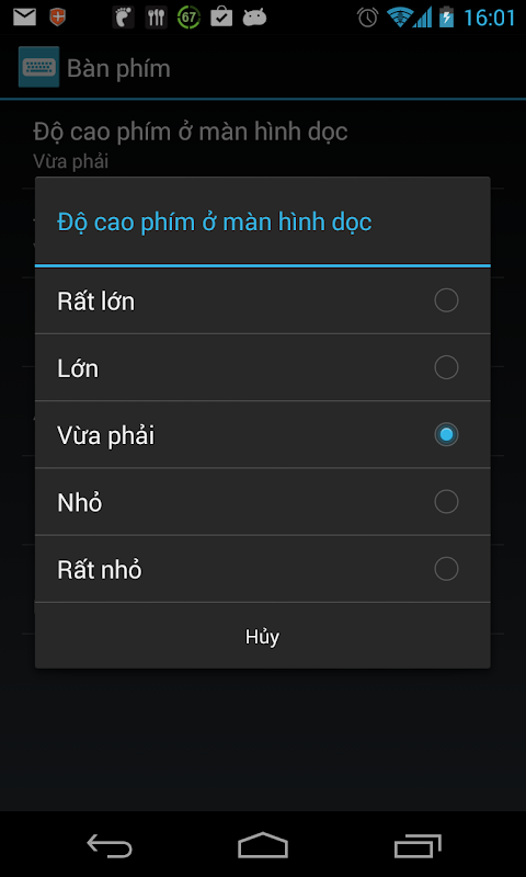 - Cho phép thay đổi chiều cao phím (trong phần Tùy chọn bàn phím).
