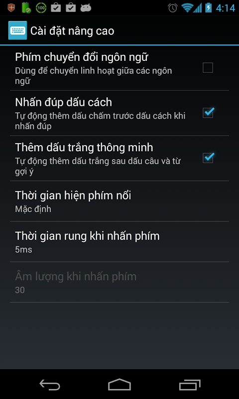- Tự động thêm dấu cách thông minh sau khi chọn từ gợi ý và khi gõ dấu câu.