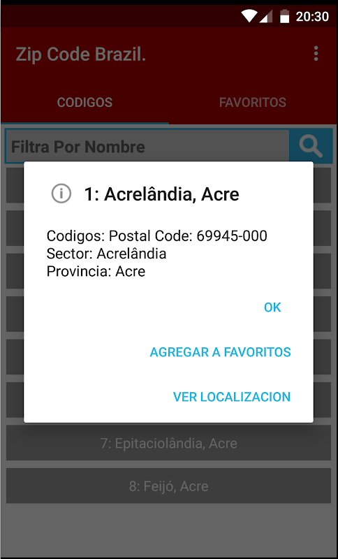 Esta Aplicación es del Código Postal Es una aplicación gratuita que permite al usuario buscar la información de todas las ciudades en Brazil por código postal o el nombre de la ciudad.