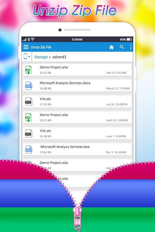 Easily open and extract your zip files and archives and store them inside the phone. Zip UnZip Files a free zip file extractor for decompress file is a ZIP file management tool on Android devices with (Extractor Tool, Unzip Tool, Zip Tool) - files type (ZIP).
