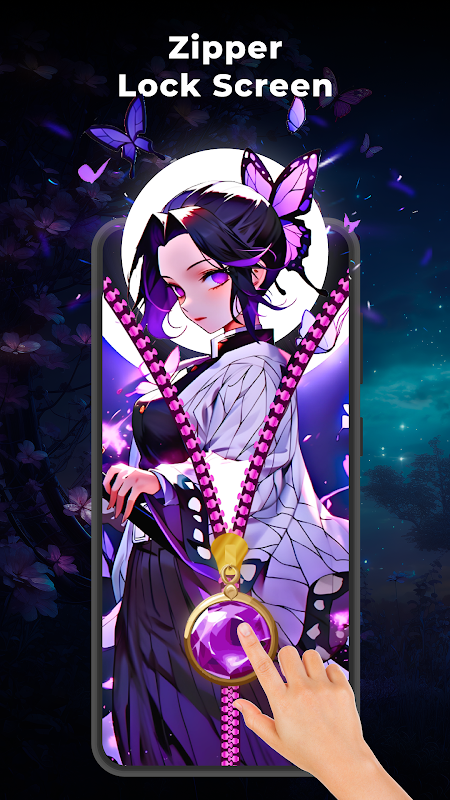 Schermata di blocco con cerniera con sfondo magico per decorare il tuo telefono con un divertente blocco con cerniera