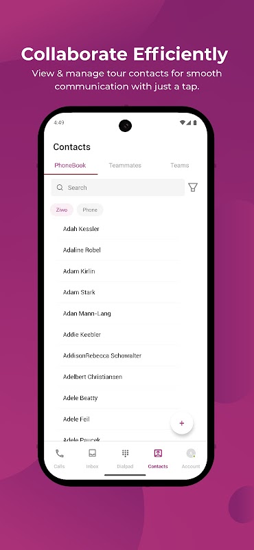 Accedi alla tua rubrica e ai contatti ZIWO in un unico posto.
