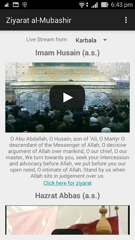 "Ziyarat al-Mubashir" is an application in which users can watch Live Shrines from the following cities: