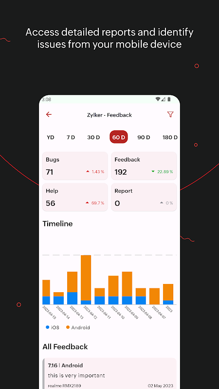 La dashboard di Apptics è ora disponibile all'interno del tuo smartphone. Visualizza e analizza le metriche delle app ovunque e in qualsiasi momento.