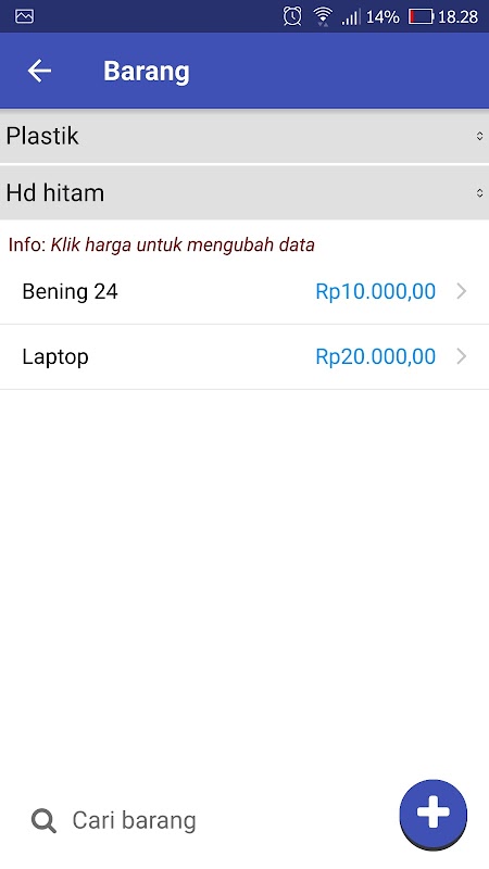 This application helps you to save or record the items in the store and their prices. This makes it easier for you when you forget the price or capital of the item.