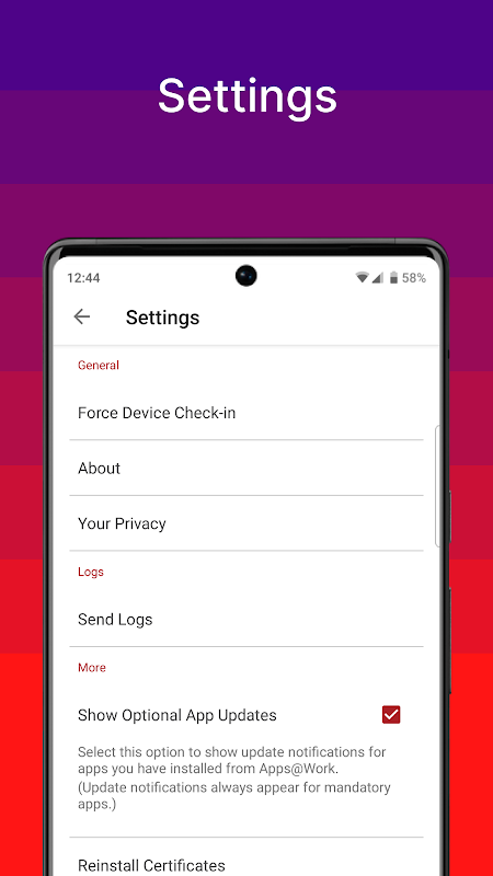 Ivanti's Mobile@Work securely connects your Android and WearOS device to your company network so that you can easily access email and other work resources.