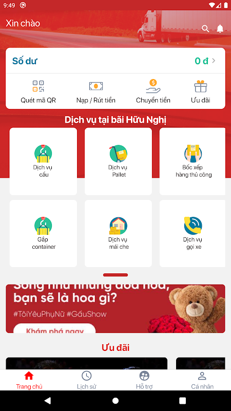 Ứng dụng xây dựng chức năng kết nối quản trị bến bãi và các xe, cung cấp dịch vụ bốc xếp, tháo dỡ, cẩu, container .. cho các cá nhân tổ chức có nhu cầu.