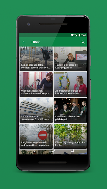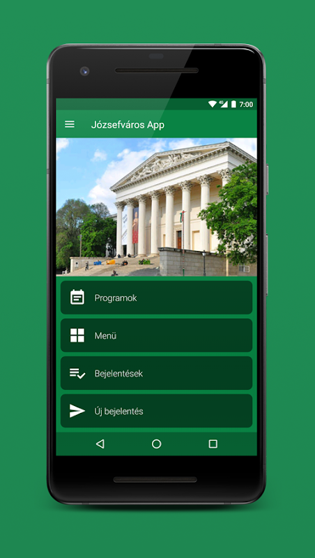 Józsefvárossal kapcsolatos általános információk, a legfontosabb elérhetőségek, valamint hibák bejelentése térképes integrációval. Az alkalmazás tartalma folyamatosan változik, ezáltal mindig friss információkat és aktualitásokat tartalmaz. Lehetőség nyílik továbbá részt venni szavazásokban, így segítve a kerület dinamikus fejlődését.